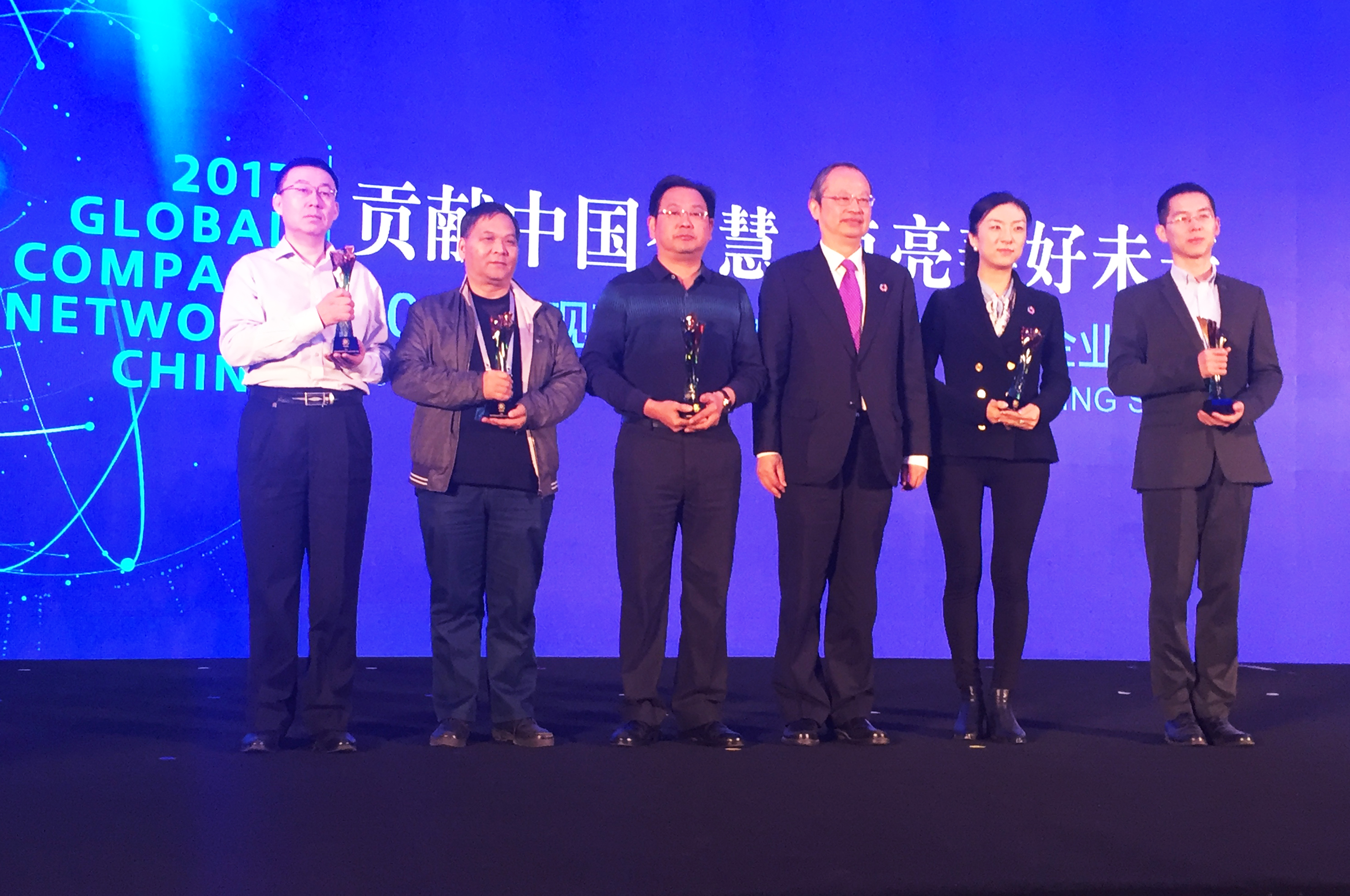 公司入選“實(shí)現(xiàn)可持續(xù)發(fā)展目標(biāo)中國企業(yè)最佳實(shí)踐”榜單,公司執(zhí)委、副總裁劉鳳山(左三)代表公司參會(huì)并上臺領(lǐng)獎(jiǎng)。